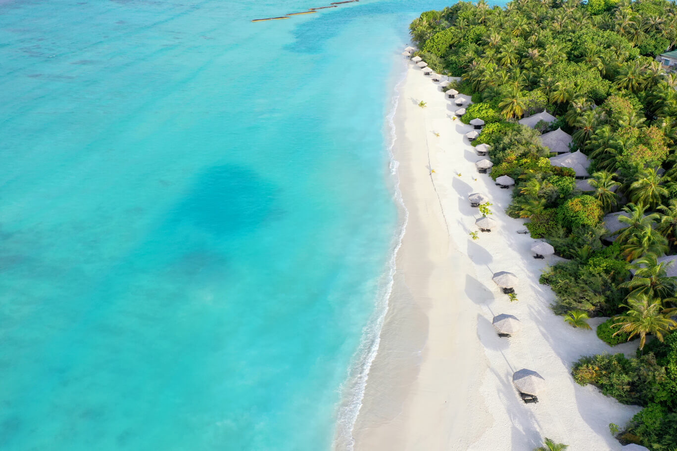 Set on the beachfront, the Beach Villa features an airy bedroom. A private outdoor pavilion is set right beside the room facing the beach, perfect to lounge with a book and for amazing views of the blue sky & glistening sea.